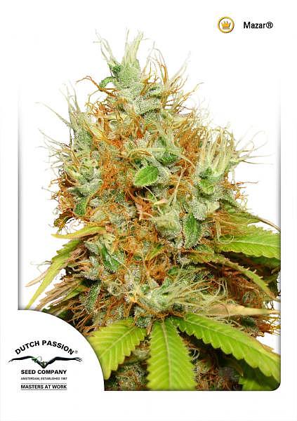La Mazar es una de las variedades más potentes y mejores que ha creado Dutch Passion. Nuestra Mazar original es una clásica de los 80 conseguida a partir de la Skunk#1 especial cruzada con una afgana de prestigio; la genética se actualizó en 1997 y la Mazar continua siendo nuestro mayor éxito de ventas de todos los tiempos. Tiene aspecto de árbol navideño y las pesadas ramas laterales garantizan enormes cosechas. El vigor y resistencia del crecimiento convierten la Mazar en una buena elección para los cultivadores menos experimentados. Es una planta de hachís auténticamente afgana con una producción de resina extremadamente intensa y una excelente potencia. Es posible que al final de la floración necesite ayuda. Asimismo, produce unos olores notablemente fuertes. La Mazar fue una de las primeras variedades de Dutch Passion disponibles en el catálogo de semillas feminizadas. Desde aquel momento, ha sido utilizada por otros bancos de semillas para la creación de nuevas variedades. Los cogollos son pegajosos, altamente aromáticos, dulces y terrosos con un sabor de buen hachís afgano y toques cítricos y de pino. El efecto potente es muy físico y potente, aunque relajante. Una sensación de adormecimiento, calidez y felicidad se combina con un estado mental meditativo y contemplativo.
