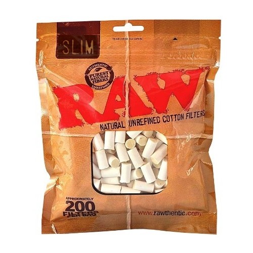 Nuevos filtros Raw de algodon 100% biodegradable .Cada bolsa contiene 200 filtros slim, perfecto para cigarillos. Es la version mas "delgada" de filtros.