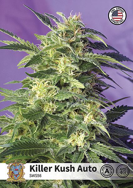 Autofloreciente de 4ª generación. Versión autofloreciente de una de las más famosas genéticas de la Costa Oeste de EEUU, creada alrededor del año 1994 en Sunset Beach al sur de California, la Ocean Grow Kush (Kush cultivada en el océano), más conocida como OG Kush. Nuestra Killer Kush Auto (SWS56) es el resultado del híbrido entre una cepa seleccionada de autoflorecientes de 3ª generación de genética principalmente índica y un clon élite de OG Kush. El resultado es una planta muy potente y de muy rápida floración. Produce grandes cogollos muy aromáticos y repletos de tricomas. El aroma de esta variedad es dulce, cítrico y ácido con pinceladas exóticas que recuerdan aromas de la familia Chem Dawg-Diesel.