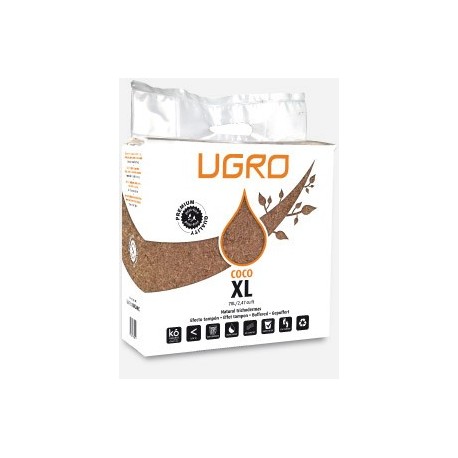 U-gro XL pastilla de 70L 30x30x12 cm es un bloque de 5kg prensado y deshidratado de fina turba de coco. Mezclándolo con unos 28 litros de agua, el bloque se convierte en 70 litros de sustrato de coco de la más alta calidad. Sus excepcionales propiedades de retención de agua, junto a la perfecta aireación en el sistema radicular, ayudan a un crecimiento más vigoroso de las plantas de marihuana. U-gro incorpora trichodermas de origen natural, un tipo de microorganismo que ayuda a combatir patologías como podredumbre de las raices, etc. Se puede utilizar tanto en cultivos de exterior, como también de interior, obteniendo resultados muy positivos.